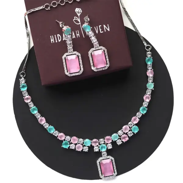 HomeShopNecklaceHidayah Heven Trendy American Diamond Necklace Set with Earrings – Perfect for Gifting
